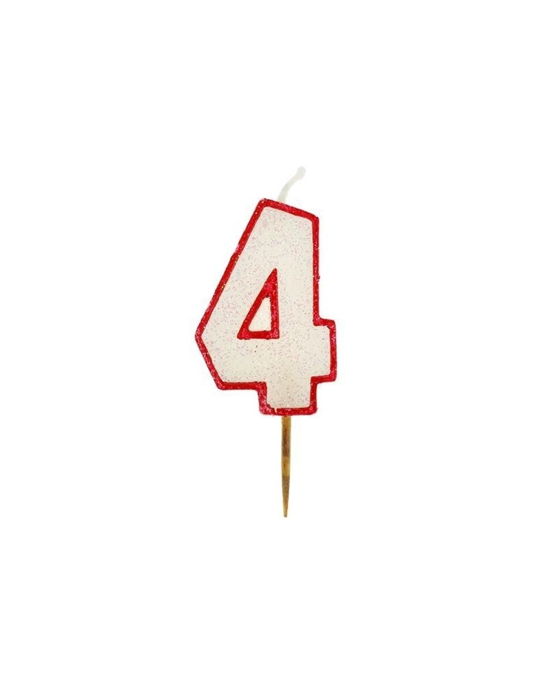 Trblietavá sviečka v tvare čísla "4" s červeným okrajom.