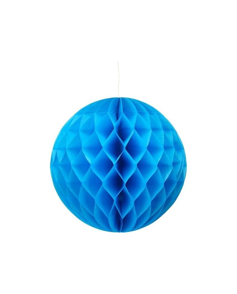 Modrá visiaca dekorácia v tvare gule, ktorá je ideálnou ozdobou narodeninovej oslavy.