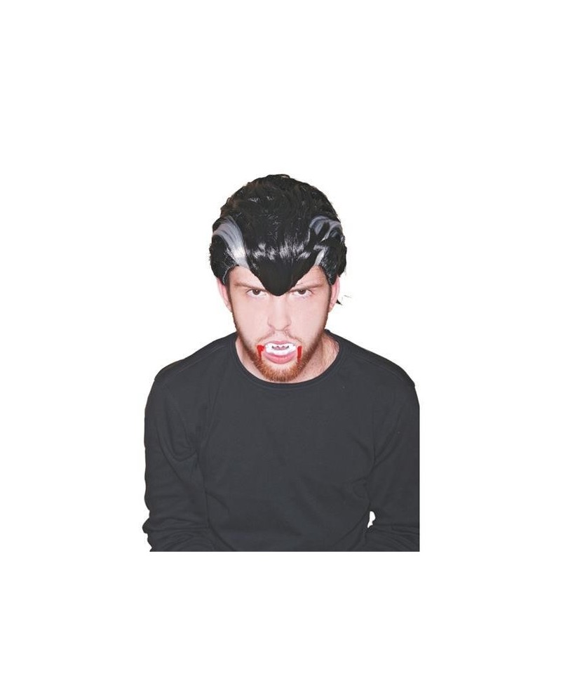 Parochňa "Upír" s krátkymi umelými čiernymi vlasmi a ofinou je dokonalým doplnkom vášho outfitu a taktiež je perfektnou zábavkou každej dobrej oslavy.