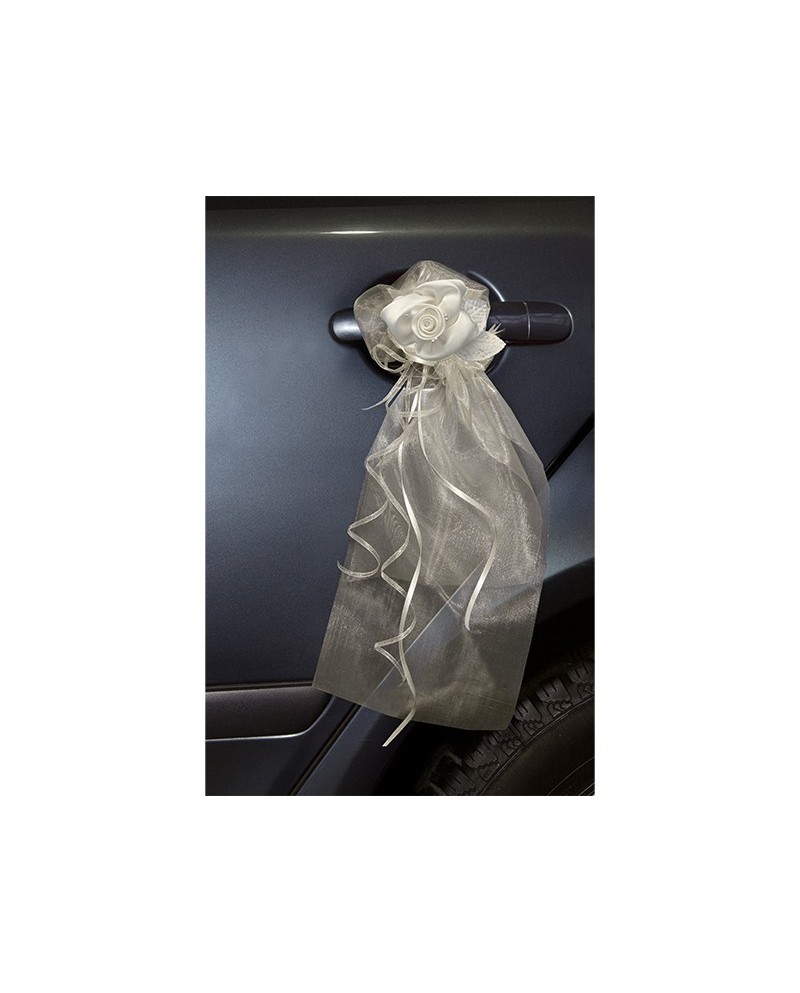 Ozdoba na kľučky auta v tvare krémového kvetu s organzou. V balení sa nachádzajú 2 kusy.